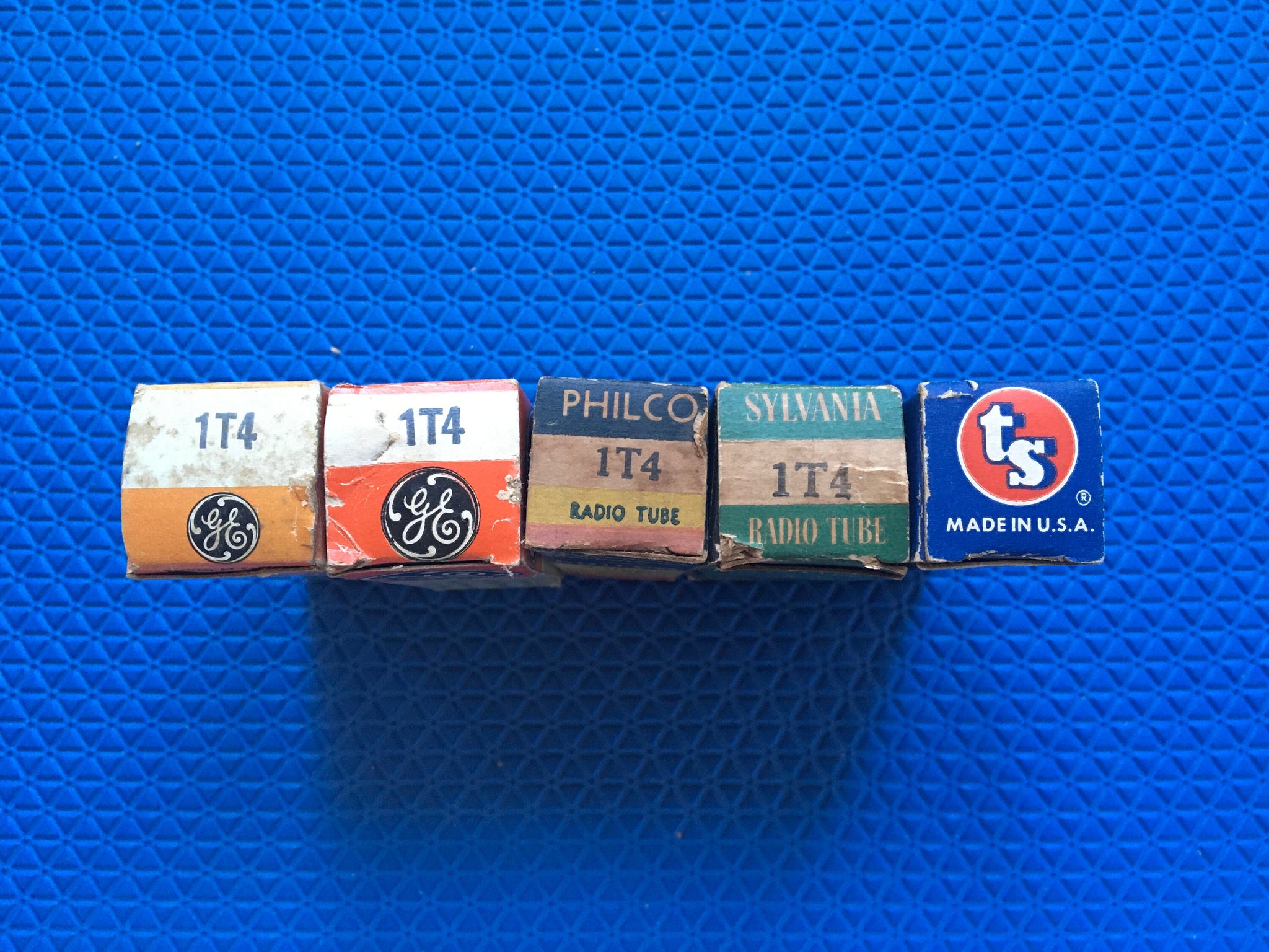 There are five 1T4 tubes in this lot. They all tested as good on our Hickok 800.