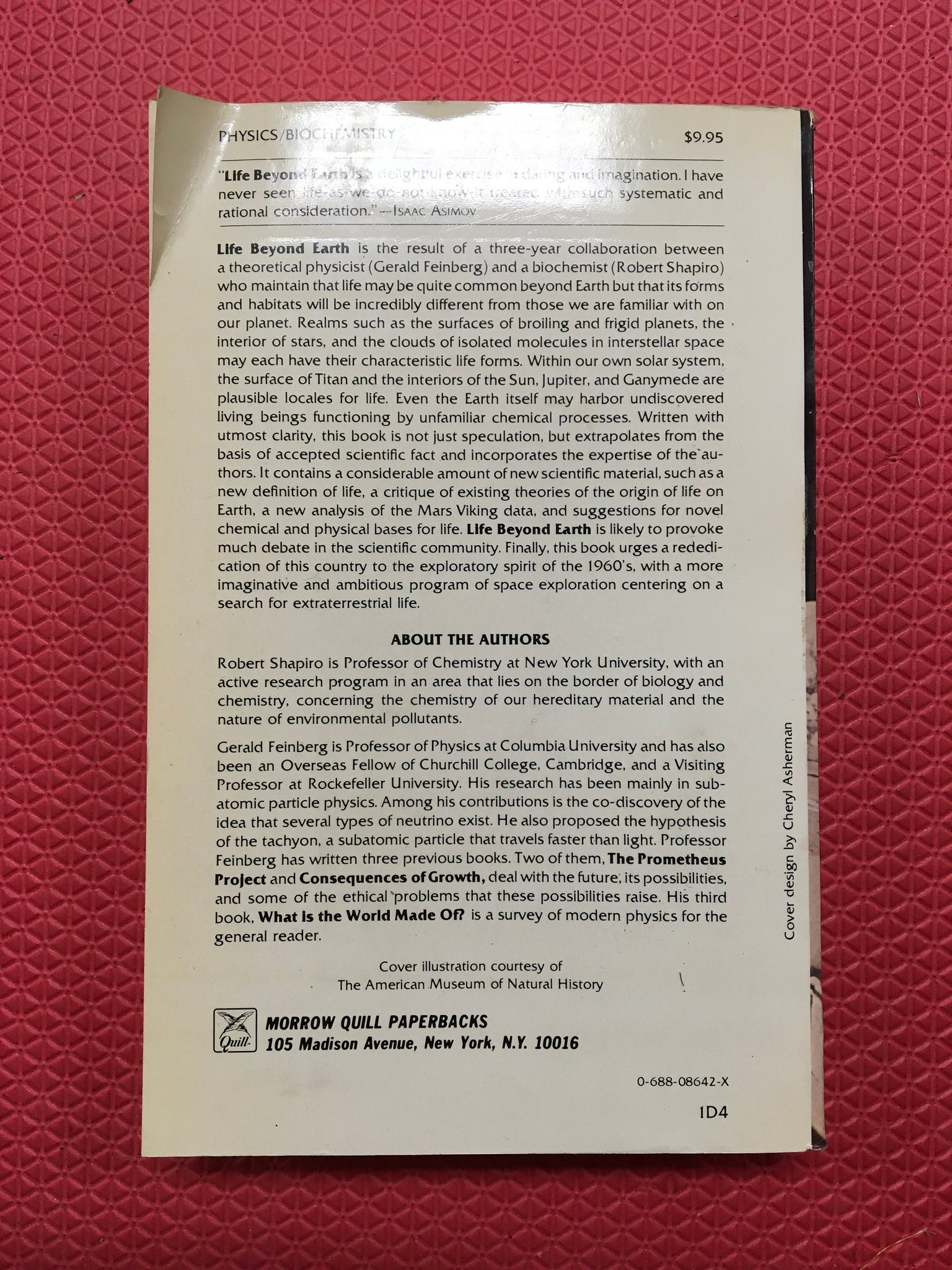 Life Beyond Earth The Intelligent Earthling's Guide To Life In the Universe Gerald Feinberg Robert Shapiro William Morrow And Company 1980