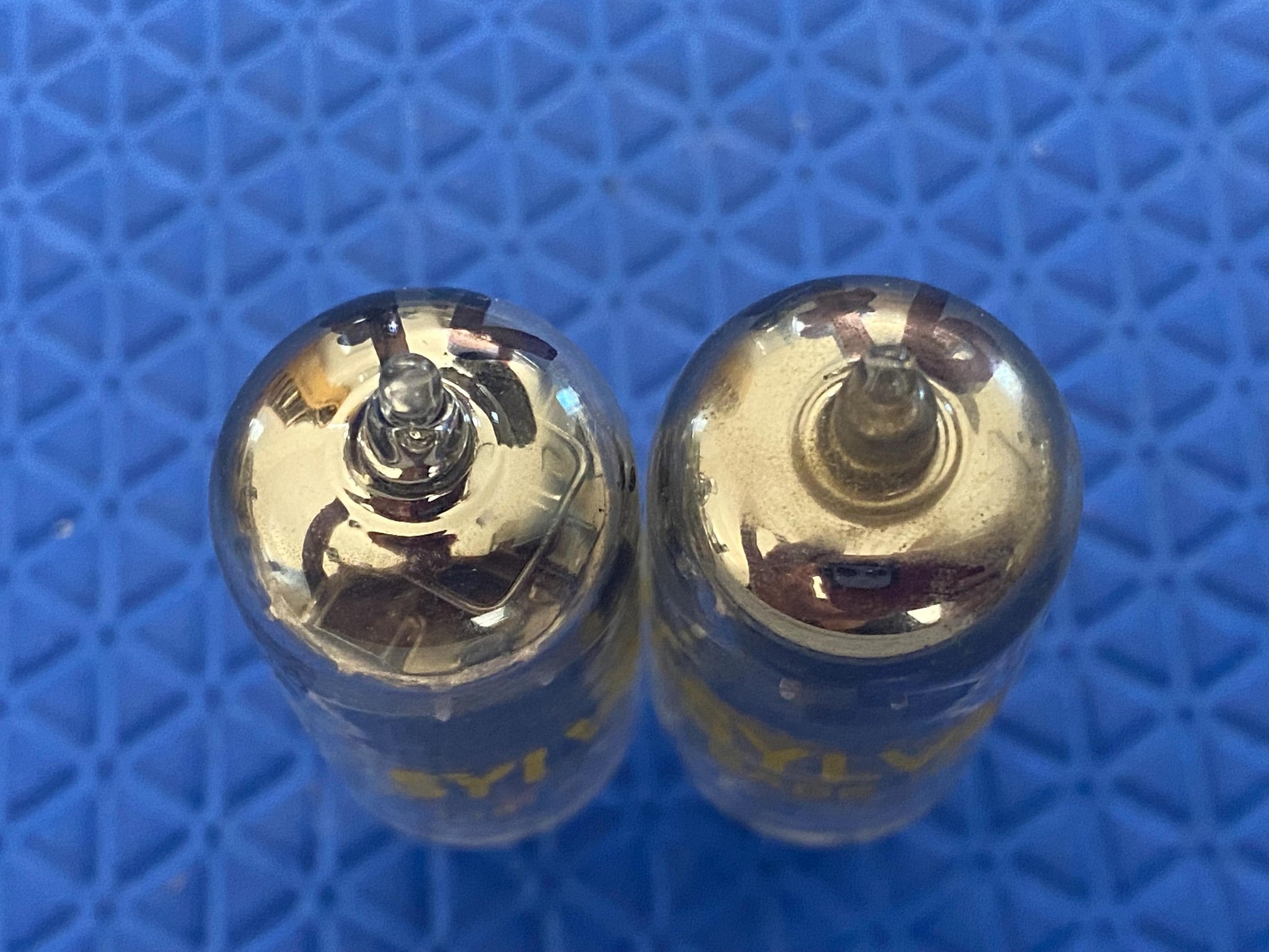 This matched pair of Sylvania 6AU6A tubes was tested on our Paul Hart-calibrated TV7/U for shorts, gas and transconductance. There were no shorts or gas.