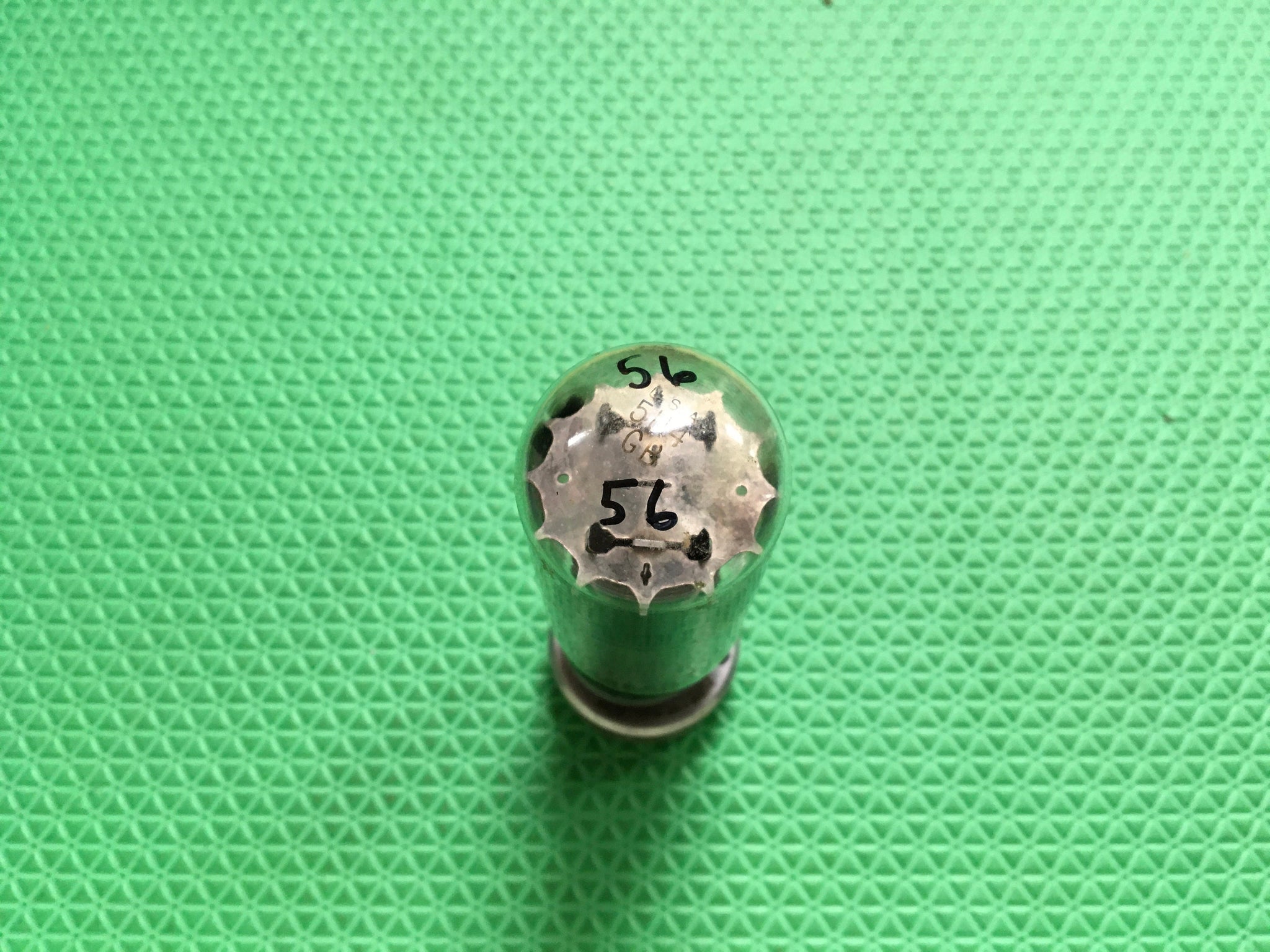 This new old stock-testing Raytheon 5U4GB rectifier tube tested 56/56 in sections One and Two, respectively, on our Paul Hart-calibrated TV7 where minimum (65%) is 40.