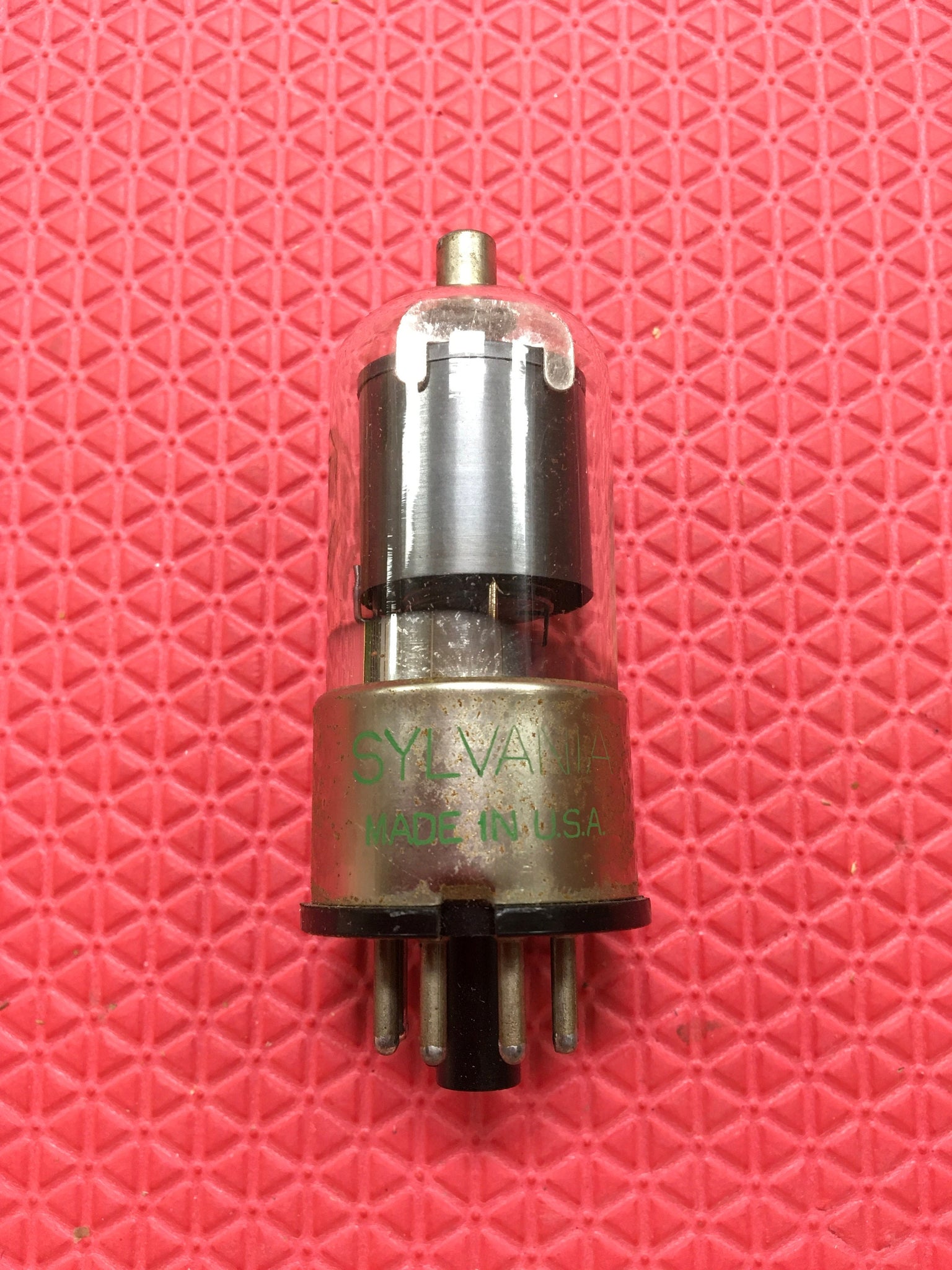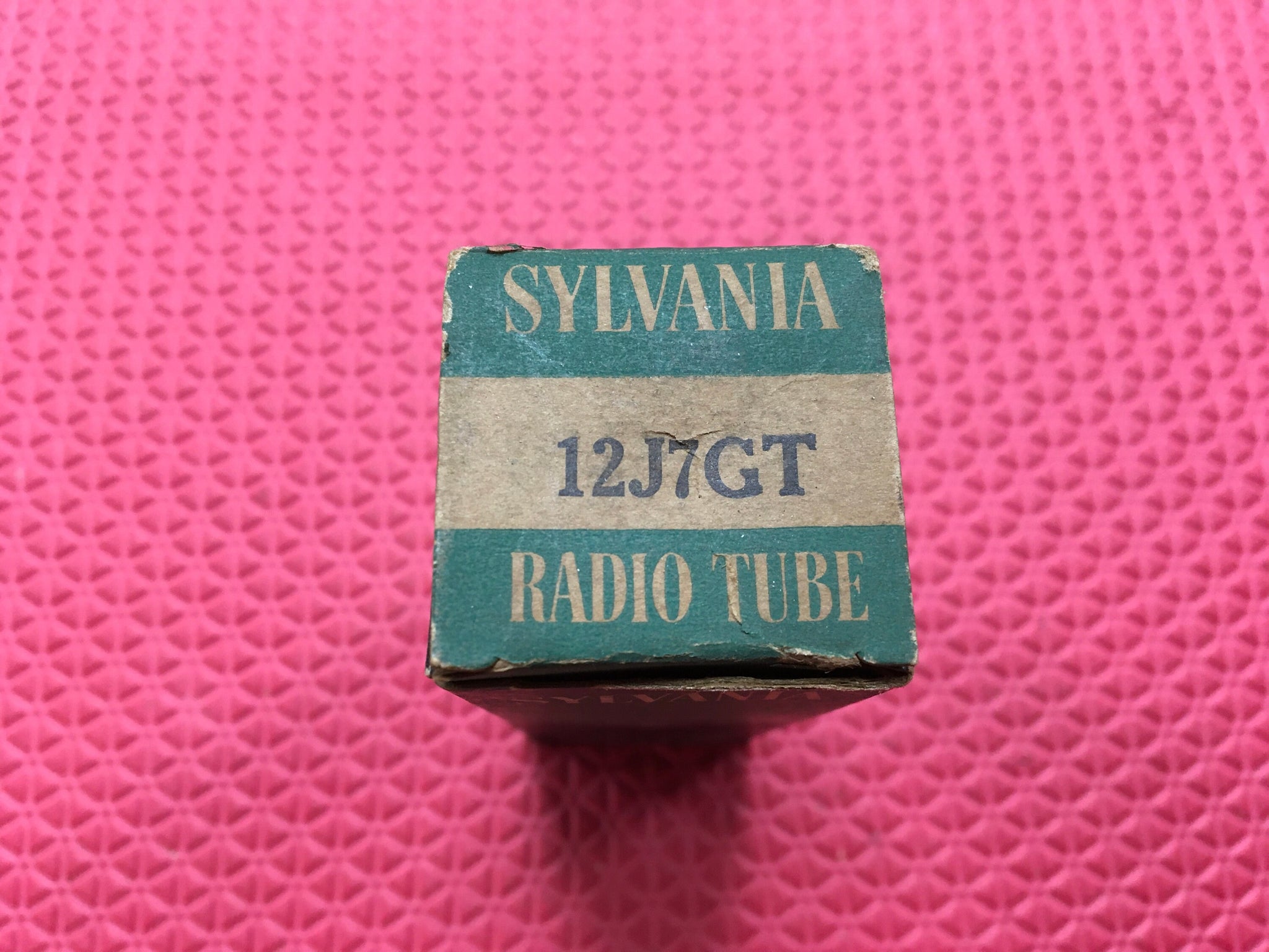 This new old stock, new in box Sylvania 12J7GT tube tested to spec on our Paul Hart-calibrated TV7/U.
