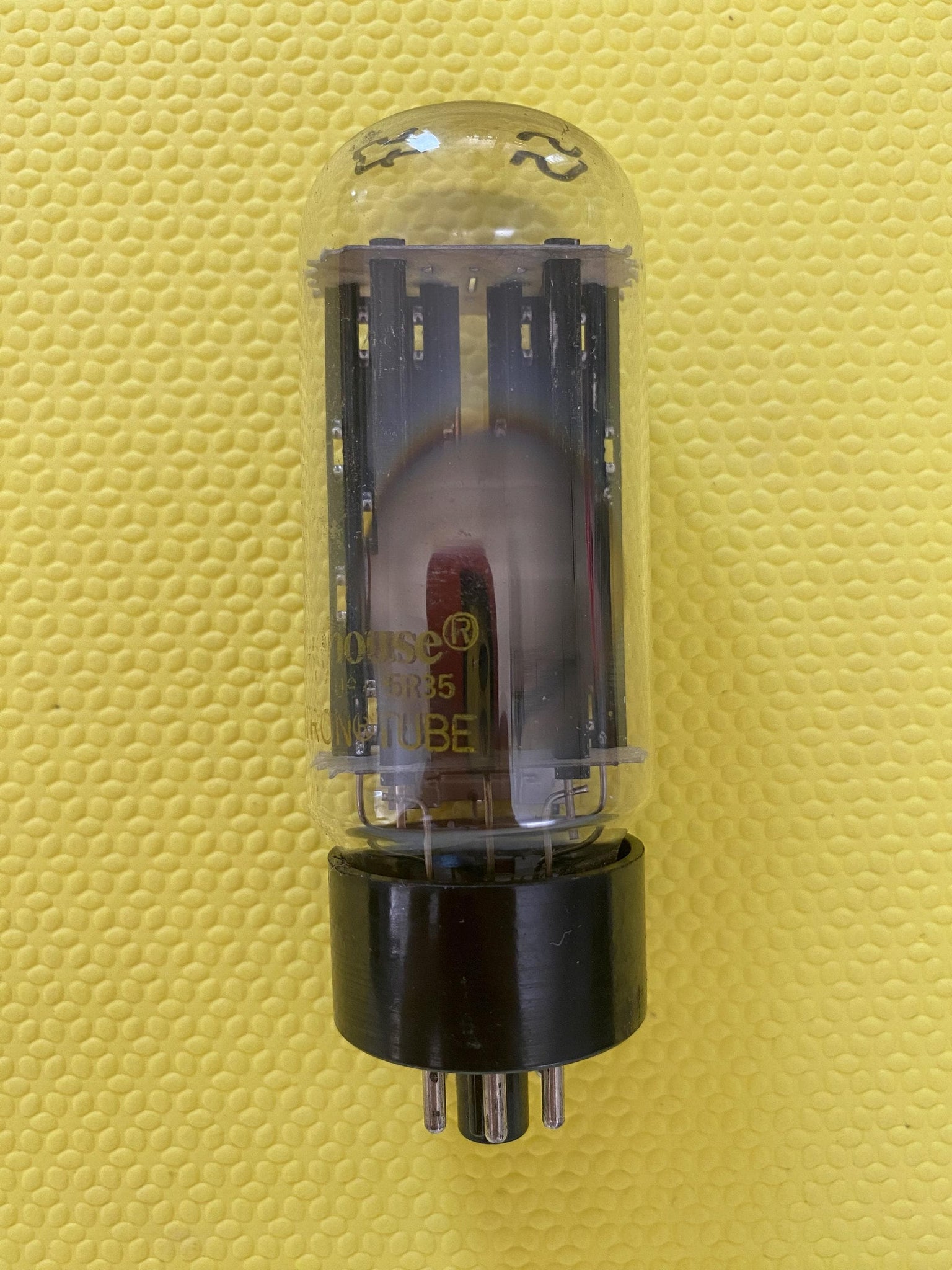 This Westinghouse 5U4GB black plate rectifier tube tested 57/55 on our Paul Hart-calibrated TV7/U where minimum (65%) is 40/40 .